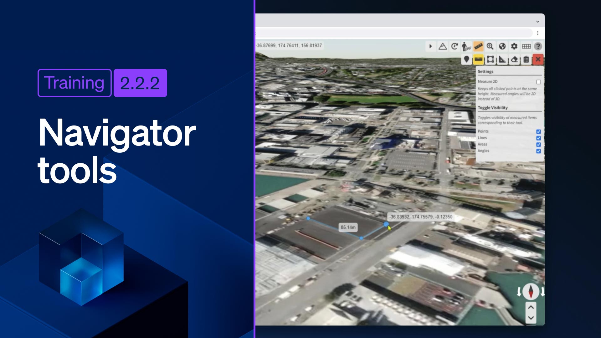 You’ll find out all about Navigator measuring tools in this video, including the Point Measure tool, Tool Help, Measure Tool settings, Measure 2D mode, Distance Measuring, area and perimeter measurement, and angle management.